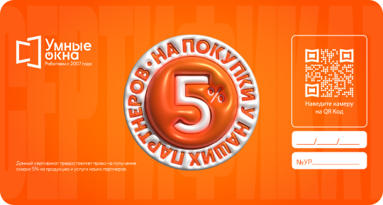 Дополнительная скидка в размере 5000 рублей на заказ окон. Можно получить в качестве «секретного приза» от замерщика.